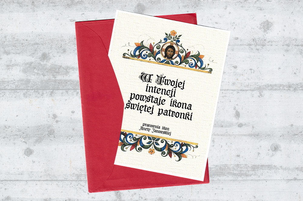 Jeżeli zamawiasz ikonę, która ma być prezentem dla bliskiej osoby, a czasu jest zbyt mało, możesz otrzymać “bilecik” zapowiadający ikonę.